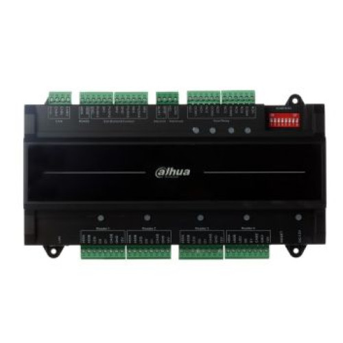 Сетевой двусторонний контроллер контроля доступом на 2 двери. Входы: 9 (4x - датчика двери, 2х - кнопки входа, 5х - тревога), выходы: 5 релейных выходов (2х - закрытие двери, Sensor trigger outx 2, 1х - тревога). Функции: Тревога превышения времени закрытия двери, охранная сигнализация, принужденная сигнализация, тревога саботажа. Поддержка 128 групп, гибкая настройка прав пользователей, черные списки. Интерфейсы: к мастеру-контроллеру (CAN H, CAN L), к считывателю (RS-485, Wiegand). DC 12В, 210х106х51мм