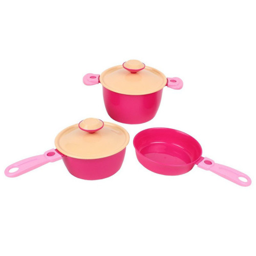В наборе есть все, чтобы маленькая хозяюшка реализовала свои кулинарные замыслы. Кастрюлька и сотейник для вкусных борщей и полезных овощей, сковородка для жарки. Шумовка, черпак и лопатка сделают процесс приготовления максимально реалистичным. Также малыши смогут пригласить друзей на чаепитие с разноцветными чашками на блюдечках.
