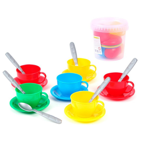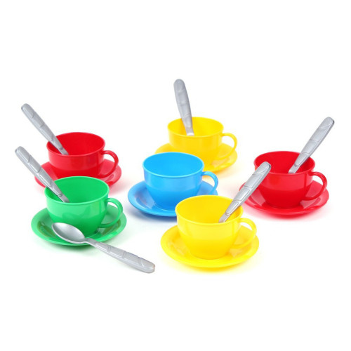 Незаменимая игрушка для чаепития маленьких хозяек. Состоит из чашек, тарелок и ложек для 6 человек.