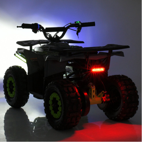 Квадроцикл имеет передние и задние фары с возможностью включения и звуковой сигнал.