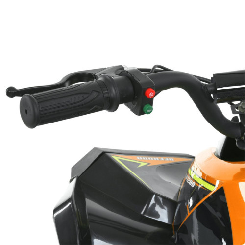 Квадроцикл оборудован большими надувными колесами, обеспечивающими надежное сцепление с поверхностью. Передние и задние амортизаторы с возможностью регулировки жесткости эффективно поглощают неровности. Дисковые тормоза спереди и сзади обеспечивают контролируемое и безопасное торможение, а цепная передача отвечает за передачу мощности.