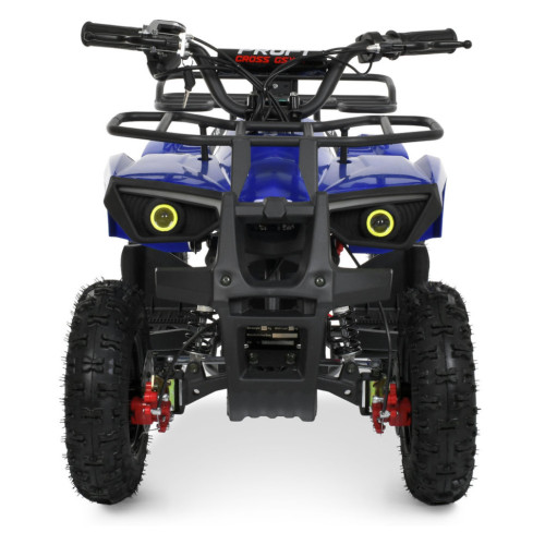 Квадроцикл оборудован надувными резиновыми колесами большого диаметра, обеспечивающими хорошее сцепление с поверхностью. Передние и задние амортизаторы с регулировкой жесткости эффективно впитывают неровности дороги. Дисковый тормоз спереди и сзади гарантирует надежное торможение, а цепная передача обеспечивает эффективную передачу мощности.