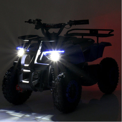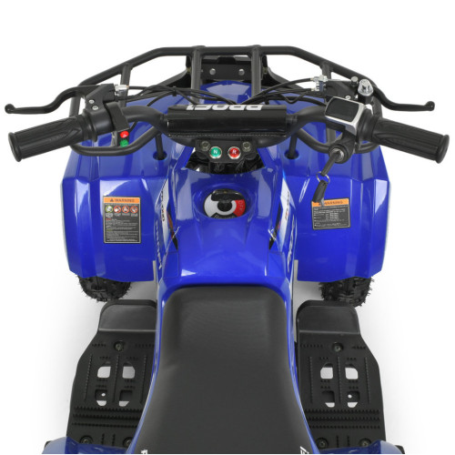 Модель оснащена мощным электродвигателем на 1000W, что позволяет развивать скорость до 25 км/ч. Предусмотрены три скоростных режима с возможностью переключения, что позволяет адаптировать поездку под уровень подготовки ребенка. Запуск осуществляется поворотом ключа, управление – с помощью ручки газа и тумблера движения вперед/назад.