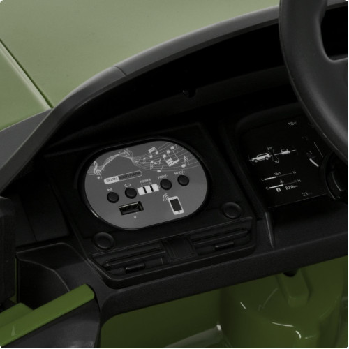 Модель имеет передние и задние фары с возможностью включения и встроенную мультимедийную систему с поддержкой MP3, USB и Bluetooth. Сигнал на руле придает реалистичности, делая поездки еще более увлекательными.