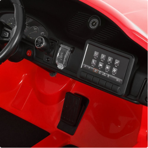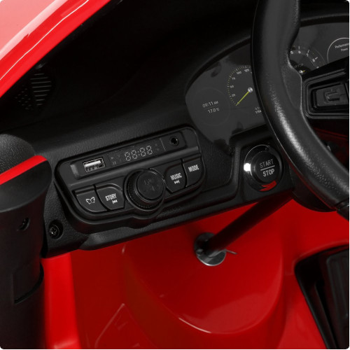 Модель оборудована передними и задними подсветочными фарами, а также мультимедийной системой с поддержкой MP3, USB, AUX, карты памяти и Bluetooth. Сигнал на руле добавляет реалистичность при управлении.