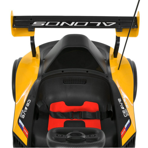Комфорт обеспечивает широкое сиденье с мягкой накладкой и 2-точечными ремнями безопасности. Сидение регулируется по расстоянию до подножки (40–53 см), что позволяет адаптировать карт под рост ребенка.