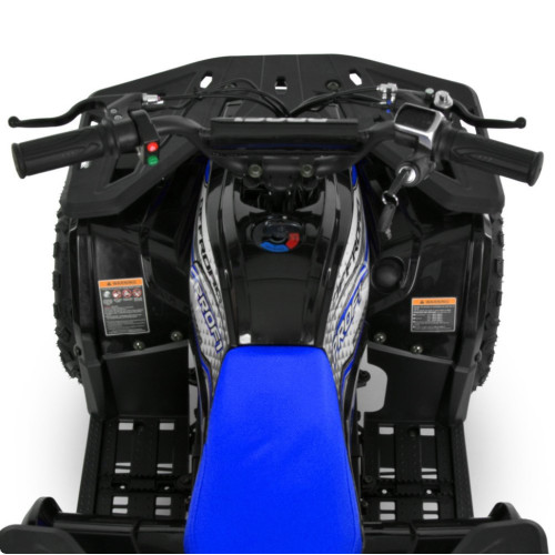 Квадроцикл оснащен бесщеточным двигателем мощностью 1000W и аккумуляторной системой на 48V, что позволяет развивать скорость до 25 км/ч. Предусмотрены три скоростных режима, которые переключаются поворотом ключа под сиденьем. Запуск осуществляется поворотом ключа, управления – с помощью ручки газа и кругового переключателя направления движения.