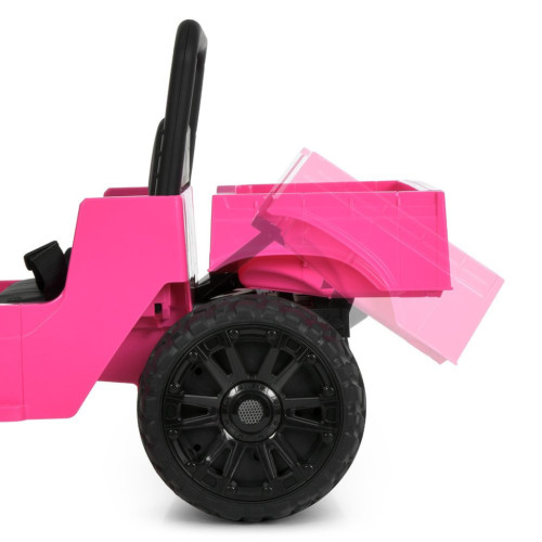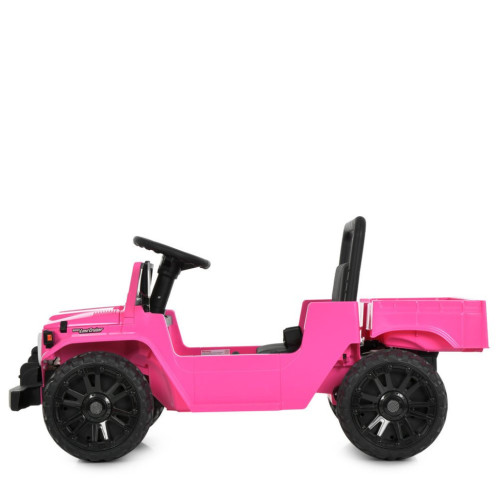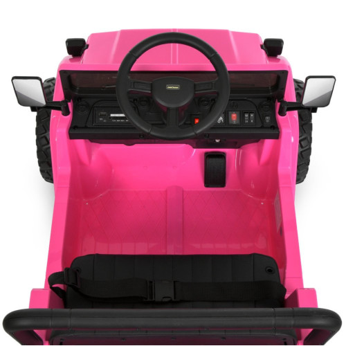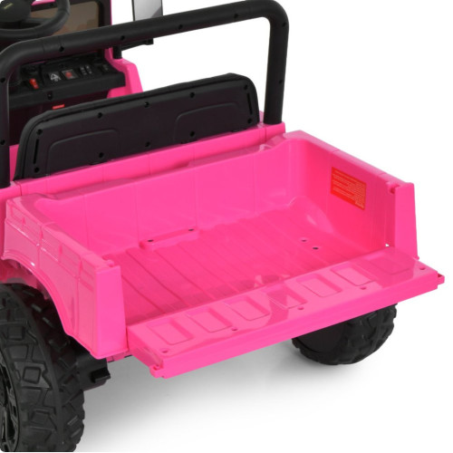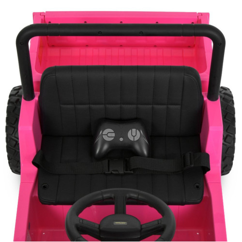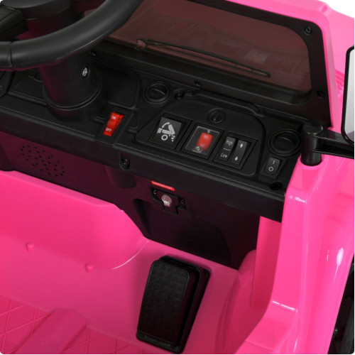 Электромобиль оснащен двумя двигателями, обеспечивающими уверенное движение и стабильную скорость. Плавный старт позволяет избежать резких рывков, делая поездку более безопасной. Управление возможно как в ручном режиме, так и дистанционно с помощью пульта с кнопкой экстренной остановки. Предусмотрен отдельный переключатель для переключения режимов управления.