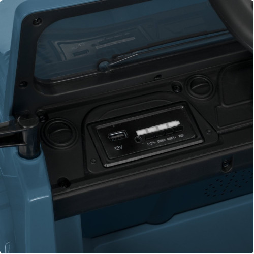 Модель оборудована передними фарами и мультимедийной системой с поддержкой MP3, USB, AUX, карт памяти и Bluetooth. Сигнал на руле добавляет реалистичность при управлении.