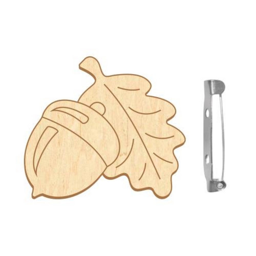 Якщо ви шукаєте спосіб трохи відволіктися від повсякденності, проявити свої таланти і створити красиві прикраси або невеликі дерев'яні вироби, не докладаючи при цьому значних зусиль і за мінімальний час, то вам сюди! Ця заготовка брошки для розфарбовування #103 «Жолудь з дубовим листком» виготовлена методом лазерного різання і призначена для створення розписних брошок і значків. Ви можете розфарбувати або задекорувати її в будь-який колір за вашим бажанням акриловими фарбами, деко-глазур'ю, дотсами, дропсами або сухими фарбами виробництва Fabrika Decoru. Потім приєднайте шпильку, яка поставляється в комплекті, і зробіть свій власний класний значок або мотиваційний бейджик. Ви також можете використовувати його для створення інших унікальних речей ручної роботи, дизайнерських предметів інтер'єру, підставок, прикрас і багато чого іншого. Варіантів безліч!