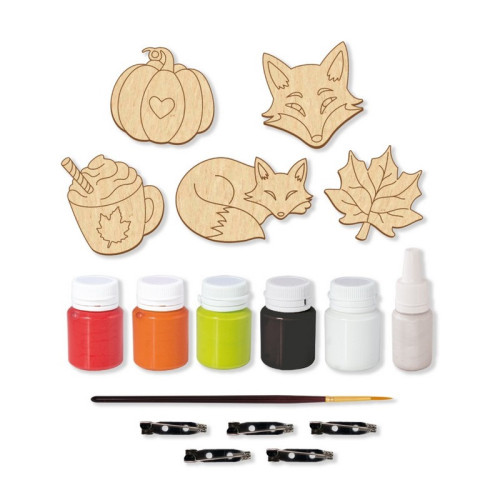 Добавьте своему образу теплые осенние акценты с набором для творчества «Яркая Осень» от Fabrika Decoru! Этот комплект «все-в-одном» позволит вам легко и с удовольствием создать пять уникальных деревянных значков-пинов. Вам не нужно быть художником — просто дайте волю фантазии и раскрасьте милые фигурки так, как подсказывает воображение. Готовые значки станут прекрасным украшением для вашей одежды, сумки или душевным подарком, сделанным с любовью.