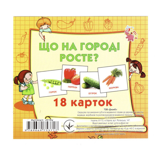 • Развивающие карточки для детей Что растет на огороде J018y, 18 картинок