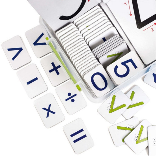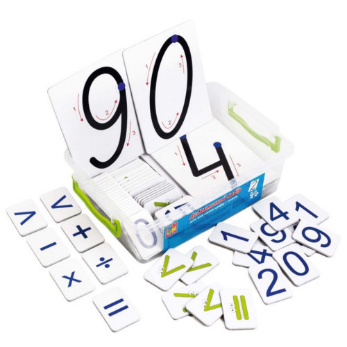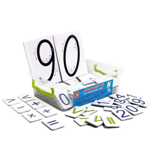 Комплектация: 10 магнитов с каллиграфическим написания цифр, 40 магнитов с изображением печатных цифр, 12 магнитов с изображением математических знаков, 12 магнитов с изображением знаков для сравнения «Цифроед».