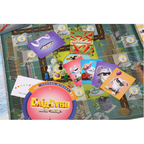 В городском подземелье поселилось семейство Зайцев. Кто-то из них украл целый мешок моркови и убегает с ним в свое подземное логово! Вам и вашей команде предстоит выяснить, кто же является Зайцем-Воришкой? Вы должны успеть разгадать эту загадку раньше, чем он пройдет через весь город и попадет к своему логову. Работайте как слаженный механизм, подсказывайте друг другу, найдите виновного: бросайте кубики, ищите доказательства, исключайте подозреваемых.