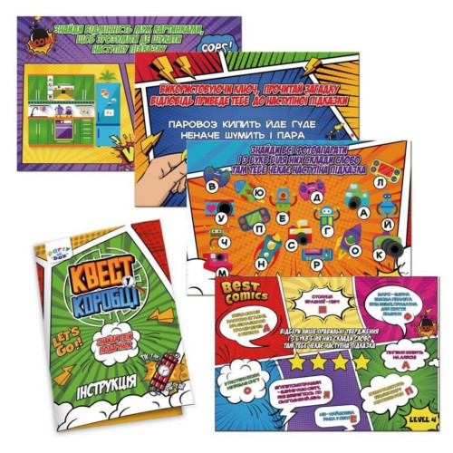 Квест в коробке «Комикс» - организованное веселье для маленькой и большой компании дома. Загадки, задания, подсказки, поиск предметов и, конечно, приз, - скучно не будет! В квесте может участвовать и один ребенок, и компания, и даже родители. Настольная игра полезна для развития внимания, памяти, логического мышления.
