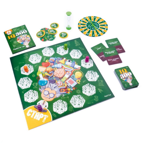 Комплектация: игровое поле, 50 карточек, 9 жетонов, 4 пешки, колесо фортуны, песочные часы, правила игры.