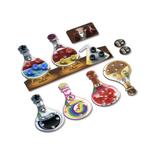 Волшебное испытание: выпускной экзамен по зельям Добро пожаловать в стены Волшебной Академии, где каждый студент мечтает стать мастером зелий. Настольная игра Взрывные зелья (Potion Explosion) погружает игроков в волшебный мир магических ингредиентов, которыми вы наполняете свои колбы. Слезы депрессивного единорога, пыльца лохматой феи, слизь людоеда - эти и другие фантастические элементы позволят вам сдать финальный экзамен. Игра предлагает веселое и увлекательное испытание для семьи, где каждый сможет почувствовать себя учеником магической школы, одновременно развивая навыки планирования и стратегии. Новая версия игры подарит вам удобный пластиковый дозатор для ингредиентов, который не нужно собирать – готовая конструкция обещает быть прочной и долговечной. Этот уникальный элемент делает игровой процесс еще более плавным и интересным, а новые шарики, скатывающиеся вниз после каждого хода, создают захватывающие цепные реакции, что позволит собрать огромное количество магических ингредиентов за один ход. Будьте готовы к взрывам – но не беспокойтесь, разрушать лабораторию не придется! Тайна взрывающихся ингредиентов Игровой процесс Взрывных зелий строится на простом, но гениальном механизме. Каждый игрок по очереди вытаскивает по одному шарику из дозатора. Когда вы забираете шарик, его место занимают другие, и если рядом оказываются шарики одного цвета – они взрываются! Этот эффект позволяет забрать все ингредиенты того же цвета, создавая цепную реакцию. При умелом планировании можно за один ход собрать массу полезных компонентов и быстрее сварить зелье. Каждый готовый эликсир приносит победные очки и позволяет воспользоваться его магическими свойствами. Зелья могут помочь украсть ингредиенты у других игроков, поменять местами шарики или даже отменить чужие ходы! В такие моменты игра превращается в настоящий стратегический баттл, где не только логика, но и хитрость поможет победить. А если вам не хватает одного важного ингредиента, вы всегда можете обратиться за помощью к профессору... но за каждый совет придется заплатить минус два очка в конце игры. Искусство зельеварения: как стать лучшим Когда все колбы наполнены и зелья сварены, наступает время подвести итоги. Победителем станет тот, кто соберет больше всего очков, но путь к вершине не так прост. Чтобы выиграть, недостаточно просто взорвать как можно больше шариков. Вам нужно умело распоряжаться сваренными зельями и использовать их эффекты в лучший момент. Именно этот баланс между тактикой и стратегией делает Взрывные Зелья настолько увлекательными для игроков разного возраста. Игра идеально подходит для семейного времяпрепровождения. Простота правил позволяет детям быстро освоить механику, а увлекательный процесс цепных реакций и магических эффектов удерживает внимание взрослых.