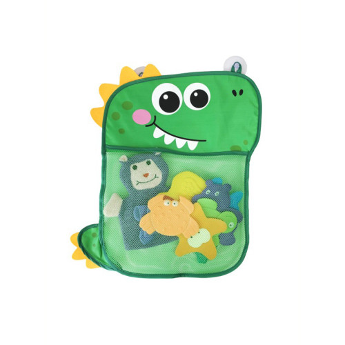 В сетку-органайзер. Он крепится к стене в ванной с помощью присосок. Органайзер вместительный, в нем могут разместиться все необходимые вещи для купания. В органайзере игрушки быстрее просыхают.
