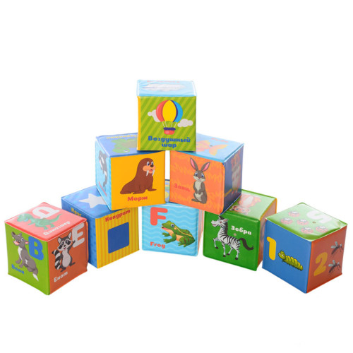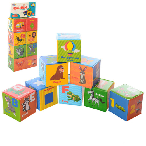 В наборе 8 мягких кубиков с буквами, словами и цифрами, благодаря которым ребенок может знакомиться с азбукой и счетом в легкой игровой форме. Кубики приятные на ощупь, легкие и безопасные для малышей.
