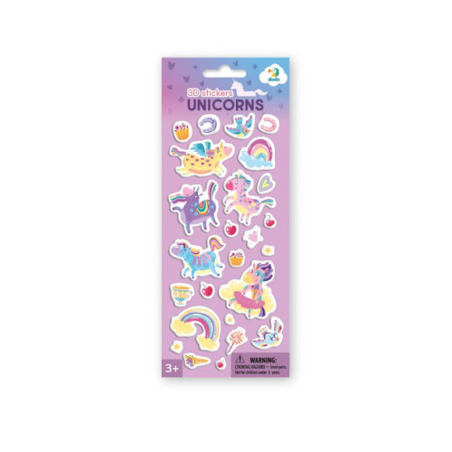 3D веселье и красота! На этих наклейках — яркие и мимимишные единорожки. Они летают в воздухе, окруженные пузырями и сладостями. Разве такие наклейки не идеальны для маленьких мечтателей?"