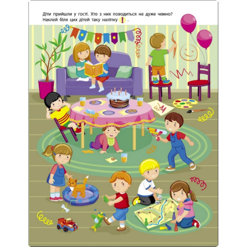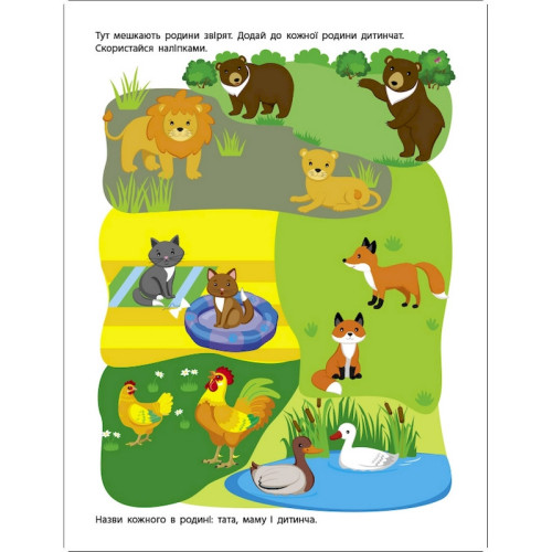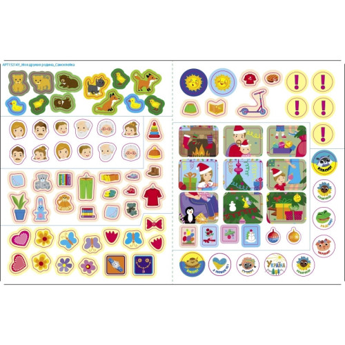 «Моя дружная семья» — воспитательный стикербук с игровыми упражнениями, имеющий более 80 наклейок. Для того чтобы закончить рисунок, ребенку нужно ответить на вопросы. А потом приклеить наклейки по сюжету. Так ребенок изучает родственные связи, исследует правила общения в семье, формирует повадки быть полезным в сообществе, создает собственное семейное дерево. На это развивает внимание, тренируется ориентироваться в пространстве и воспринимать на слух информацию. На обороте тетради важные темы для обсуждения.