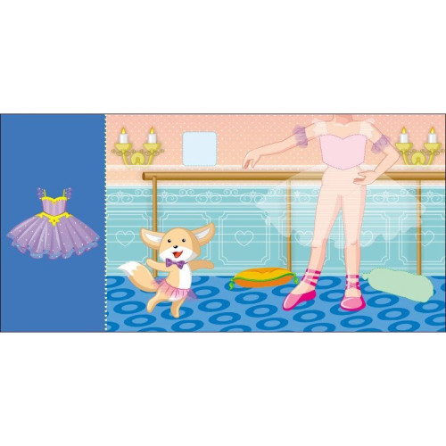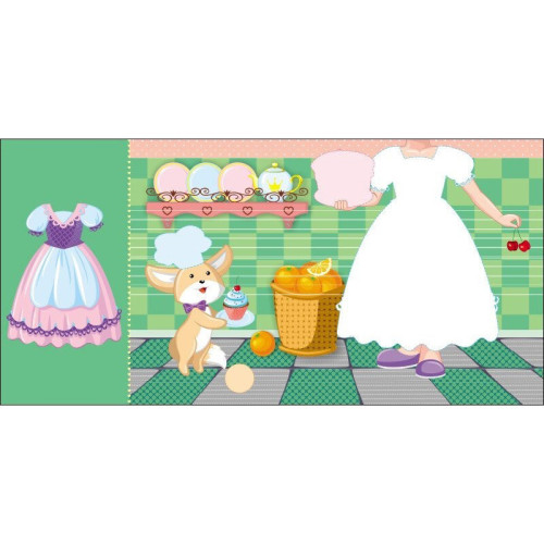 Обложка каждой книги имеет оригинальную вырезку в виде девочки-куклы. А страницы — это ее наряды. С помощью цветных карандашей, фломастеров и прилагаемых к книге наклеек ребенок сможет раскрасить наряды для куклы. Образцы платьев представлены рядом на странице.