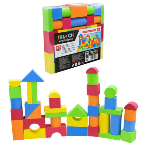 Этот красочный конструктор станет любимой игрушкой вашего малыша! В наборе 38 деталей разных форм, цветов и размеров, сделанных из лёгкого и безопасного материала EVA.