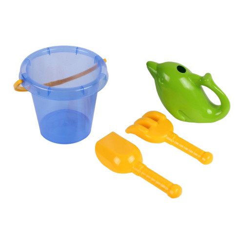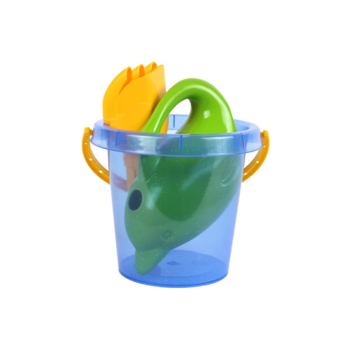 Оригинальное прозрачное ведерко с блестками, переливающимися на солнце, вызовет настоящий восторг малышей. Прохладный голубой цвет ассоциируется с морскими волнами. С игрушкой не только весело играть в песочнице, но и интересно работать в саду. Лейка в форме дельфинчика, лопатка и грабельки для этого пригодятся.