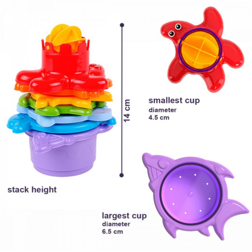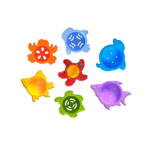 Но кроме развлечений, еще и обучения. Построить и разрушить пирамиду, изучить цвета, размеры, формы, познакомиться с морскими жителями, и сделать первые шаги в счете. А еще множество идей, которые придумает Ваш малыш. Ведь такая игрушка хорошо развивает мелкую моторику, координацию, память, логику и воображение.