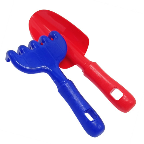 Нужно заметить, что и лопатка, и грабельки, благодаря ярким цветам, не затеряются в песке или густой траве.