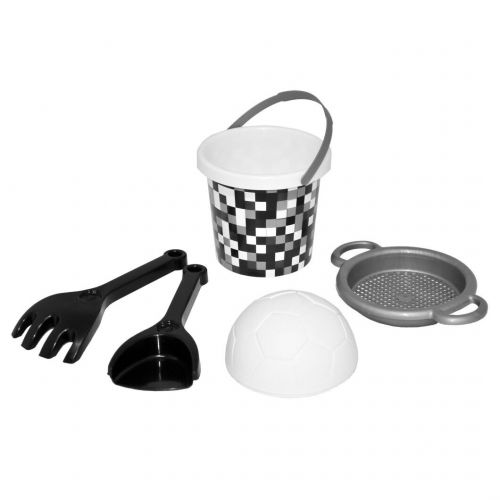 Набор для песка "Пиксель" (5 эл.) с термонаклейкой. Нанесение рисунка по технологии IML (наклейка, которая вливается) гарантирует устойчивость рисунка к песку и воде. Рисунок имеет яркий цвет и не повреждается позже. В наборе: ведерко, лопатка, грабельки, сито и пасочка.