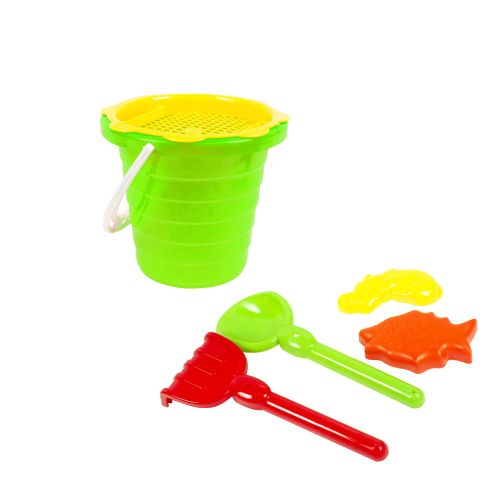 Комплектация: Ведро, лопатка, грабли, 2 пасочки, сито
