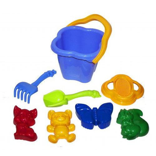 Комплектация: Ведро, крышечка-сито, лопатка, грабли, 4 пасочки