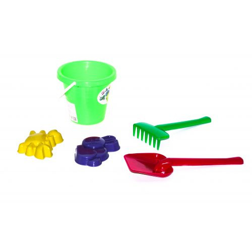 Набор для песка "Бамсик малый". В набор входит 5 элементов: ведро (15 х 14 х 12 см), лопатка (24,5 см), грабли (20 см) и 2 пасочки. Подходит для игры дома, на улице, в саду или на пляже.