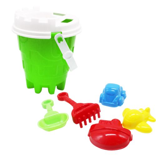Комплектация: Ведерко, 3 формочки для песка, грабельки, лопатка и сито