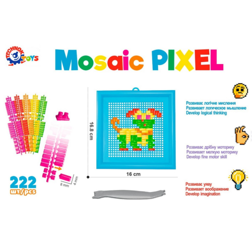 Игрушка "Мозаика" - это отличная игра для развития мелкой моторики, внимания и памяти. Собирая картинку, нужно рассчитать каждый следующий шаг. Это поможет детям улучшить навыки счета и концентрацию.