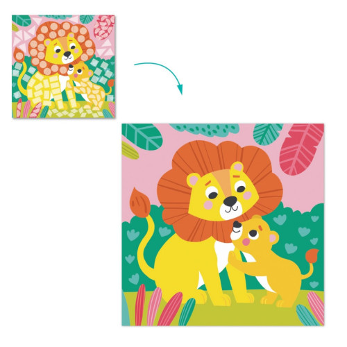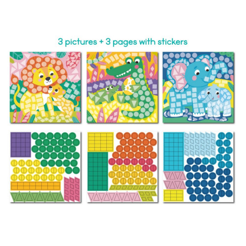 В набор входят 3 картинки с изображениями льва, слона и крокодила, которые нужно украсить более чем 400 наклейками. Готовые работы станут прекрасным украшением детской комнаты или подарком.