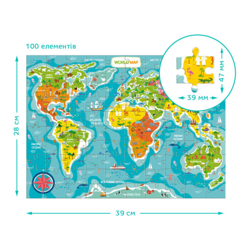 Развивающий пазл World Map на 100 элементов – узнавай мир с удовольствием!