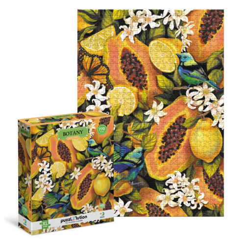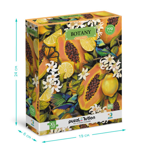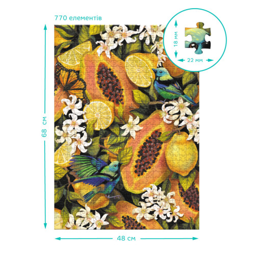 Погрузитесь в мир ярких красок и экзотики с пазлом Dodo Botany "Тропические фрукты". Сочные папаи, лимоны, цветущие ветки и птички создают неповторимую атмосферу летнего сада, наполненного жизнью и свежестью.