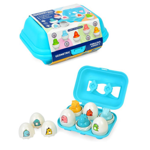 Функция сортера: Каждое яйцо разделяется на две части, внутри которых находятся объемные фигурки и соответствующие им отверстия. Задача малыша - найти правильную пару по цвету и форме.