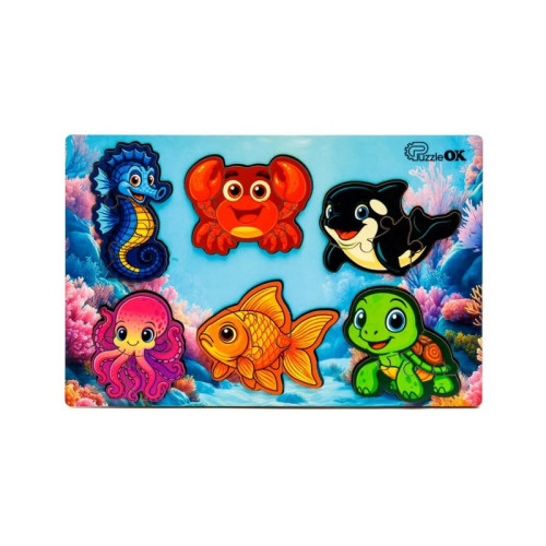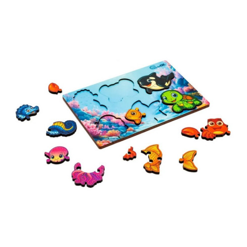 Деревянный пазл-вкладыш "Умный мир: Морские друзья" Puz-88748 А5, 18 элементов