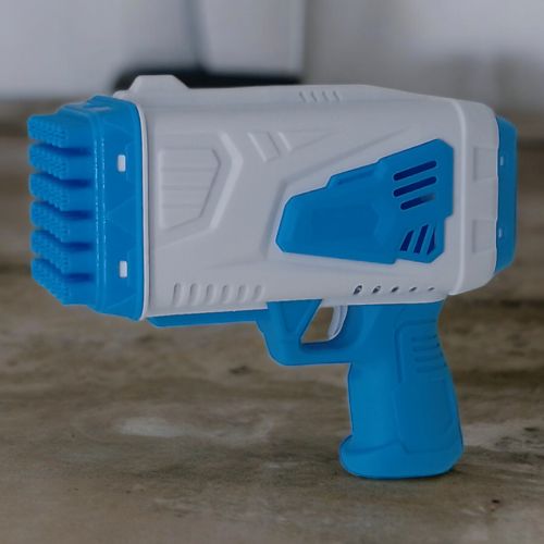 Пистолет-пулемет Bubble Gun – это игрушка для создания мыльных пузырей, которая позволяет автоматически выдувать много пузырьков за короткое время. Принцип работы устройства: окуните отверстия в жидкость, идущую в комплекте с пистолетом, нажмите на курок и он начнет выдувать множество пузырьков. Размер игрушки: 19 х 8 х 15 см. С подсветкой. Работает от батареек АА (нет в комплекте).