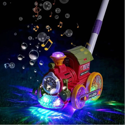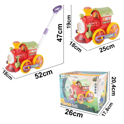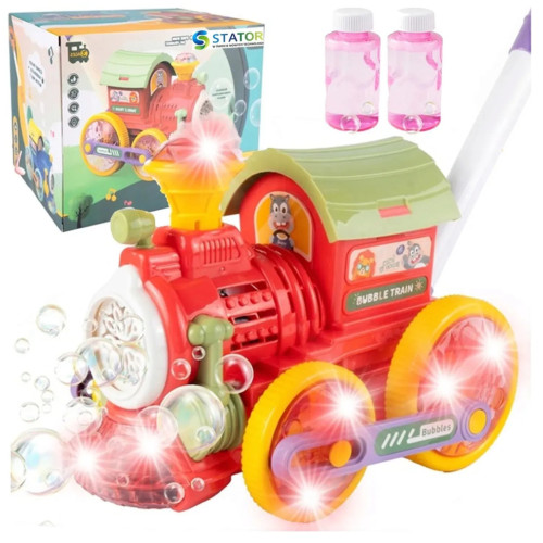 Пузырьковая машина-каталка в виде поезда - это яркая и функциональная игрушка, сочетающая активную игру и создание мыльных пузырей. Во время движения поезд выпускает множество пузырьков, совершая прогулки еще более веселыми и увлекательными.