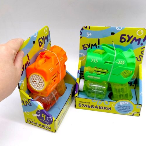 Мыльные пузыри пистолет-динозавр, короб (оранжевый)