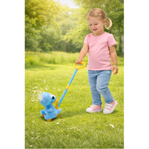 Мыльные пузыри-каталка "Динозаврик" BJC-A - интерактивная игрушка для активных прогулок. Во время движения каталка автоматически создает поток мыльных пузырей, а световые эффекты делают игру еще более интересной.