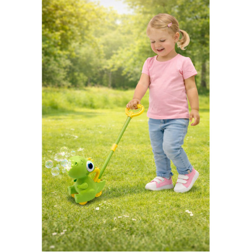 Мыльные пузыри-каталка "Динозаврик" BJC-A - интерактивная игрушка для активных прогулок. Во время движения каталка автоматически создает поток мыльных пузырей, а световые эффекты делают игру еще более интересной.