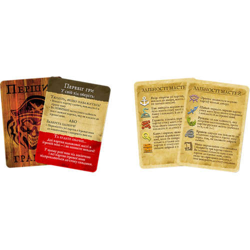 Полное издание на украинском языке содержит не только карты добычи, но и 17 карточек способностей пиратов и 6 вариантов игры для большей реиграбельности. Для варианта игры "Русалка" используются дополнительные карты.