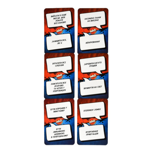 «Одно из двух» — настольная игра для компании, чтобы весело провести время и лучше узнать друг друга. На карточках — два варианта, выбрать можно только один.
