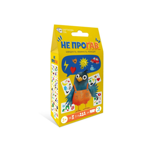 "Не упусти!" – динамичная карточная игра, испытывающая твою внимательность на максимум! Каждая пара карт имеет только один общий символ, и твоя задача — найти его среди других как можно скорее. Будь ловким, внимательным и не позволяй соперникам опередить себя!