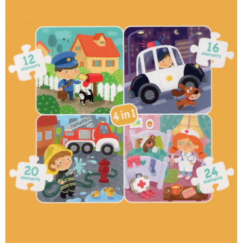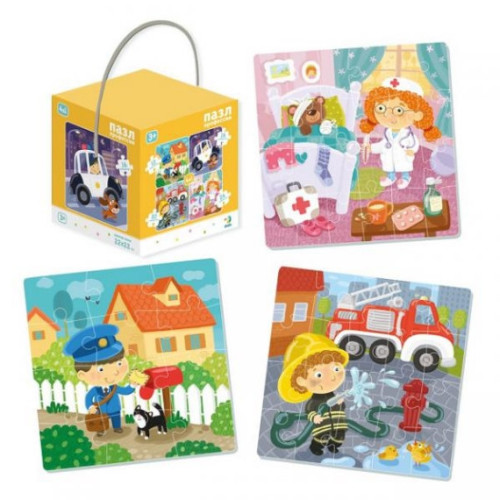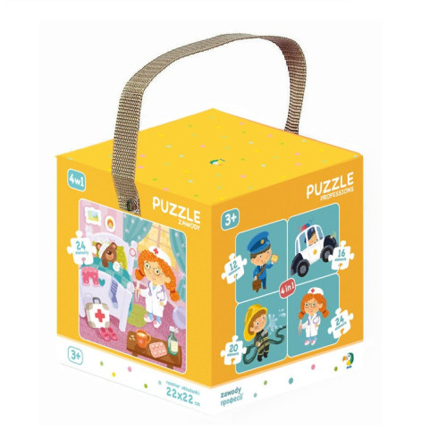 Пазл 4 в 1 "Профессии" украинской ТМ Додо в подарочной объемной коробке-кубе с ручкой.